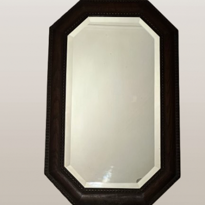 This antique octagonal wall mirror has an intricately designed oak frame that is both classic in design and timeless in appeal. The rich tones and fine detailing of the wood add a touch of elegance to any room, while being an eye-catcher in traditional and modern settings alike. The unusual shape of the frame, together with the reflective quality of the glass, will add depth and character to your room. Perfect for anyone who loves the charm of old items and craftsmanship.