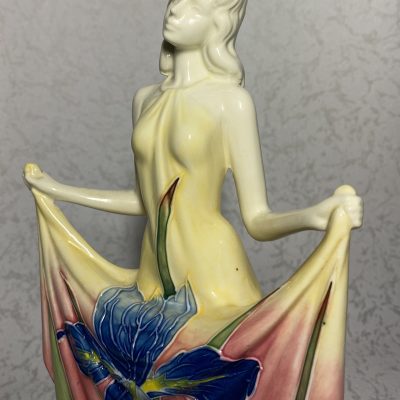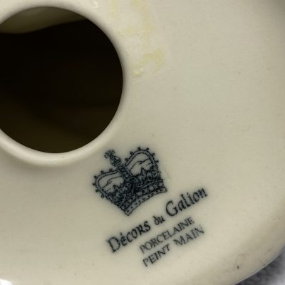 This is a French Art Deco hand-painted porcelain figurine of a stylish lady. Crafted by the very well-known studio Décors du Galion, it is truly representative of the elegance and refinement inherent in all Art Deco pieces. Because of the material used, porcelain, and the workmanship of hand-painted details, it is both highly decorative and of excellent quality.