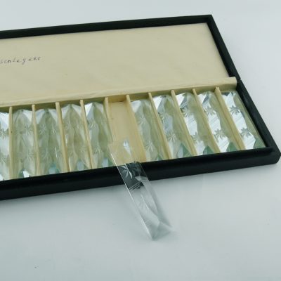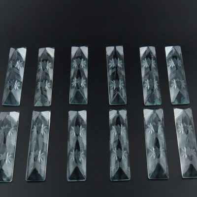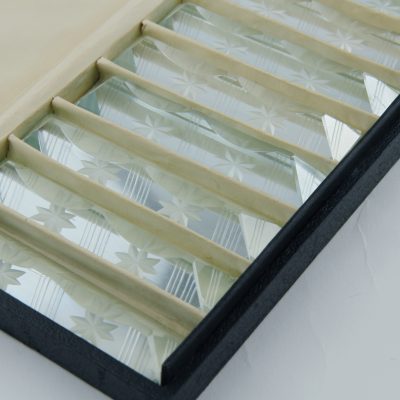 Art deco set of cut crystal knife rests, with floral engraved decor.