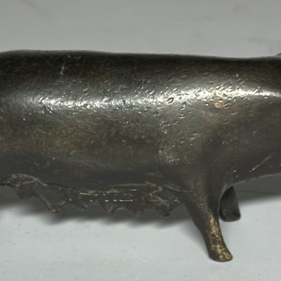 This delightful bronze pig sculpture so eloquently depicts the fun and endearing nature of this cherished animal. With fine, detailed work and a warm, polished finish, it exudes charm and character into any space. Perfect as an accent for animal lovers and collectors alike, or even as a unique gift, this sculpture embodies whimsy with timeless artistry. Compact but big in personality, it’s perfect for adding a touch of rural elegance to your home or office.