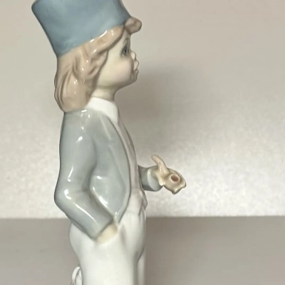 This charming figurine from the 1970s is crafted from glazed porcelain by the renowned Spanish porcelain manufacturer Casades Porcelanas. It depicts an elegant young gentleman holding a pipe, adorned with hand-painted underglaze in soft pastel colors, characteristic of traditional Spanish porcelain.