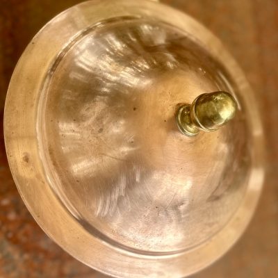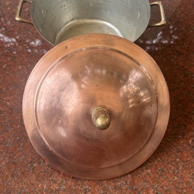 This handcrafted copper casserole exudes an old-world charm that seems timeless, along with serving functions. Handcrafted from high-quality copper, it boasts excellent heat conductivity, making it perfect for slow-cooking dishes that are to be served directly from the stove or oven. It comes with a lid of the same type, adding functionality and beauty to the overall unit.