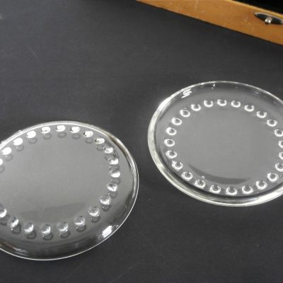 12x Beautiful crystal coasters from Crystal Leerdam Holland, with dotted motifs (acting as legs) at the bottom.
