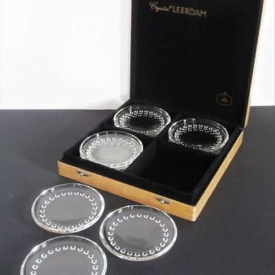 Crystal Leerdam – Coaster (12) – Crystal coasters in original wooden box – Crystal