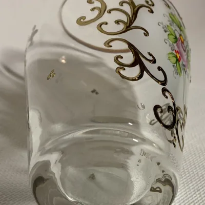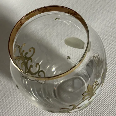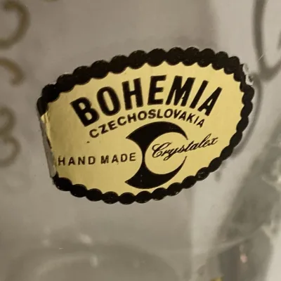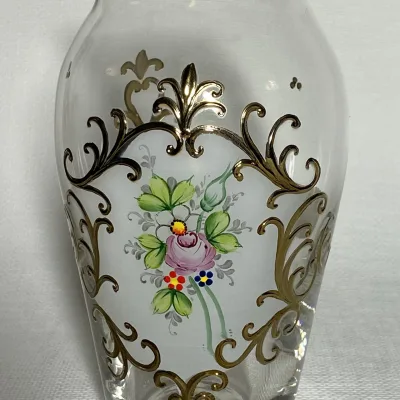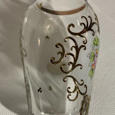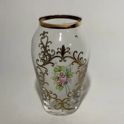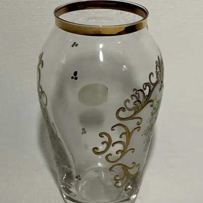 Bohemia Czechoslovakia transparent handmade vase with gold decoration.