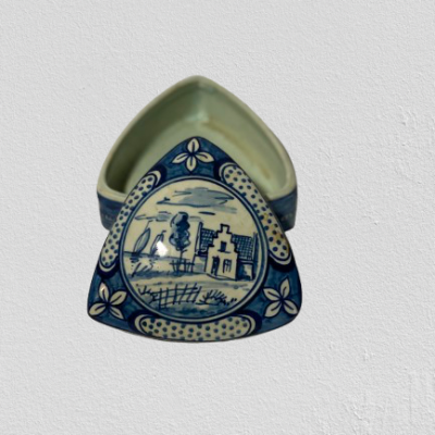 Delft blue hand painted jewelry box from 1930’s. In good condition.
