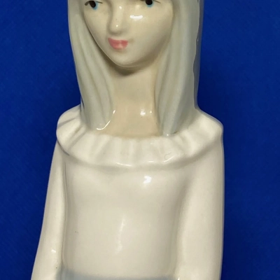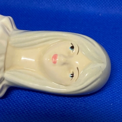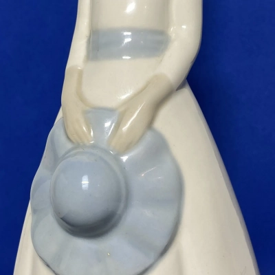 This beautiful Porceval Spain porcelain figurine of a young girl holding her hat is an embodiment of innocence and elegance. Made in glossy finish, with minute details, this piece represents timeless art, reminiscent of Lladro porcelain. The backstamp in the bottom of Porceval is very faded, but it still holds its charm-a classic Spanish charm that would delight any porcelain collection.