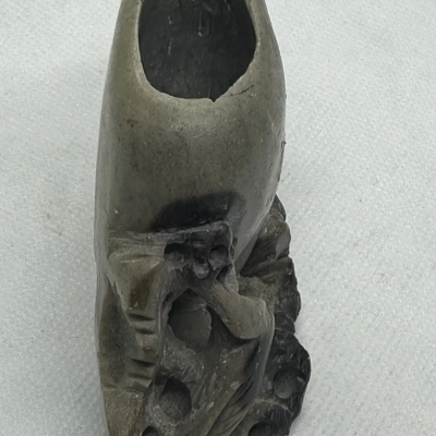 This soapstone hand-carved Chinese ink well exhibits exquisite craftsmanship. Delicate carvings of flowers and leaves, among other natural elements, encircle the well’s base in this design. A pleasing harmony between ornamentation and simplicity is achieved by the contrast between the intricate carvings and the smooth, rounded top.