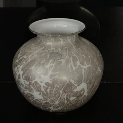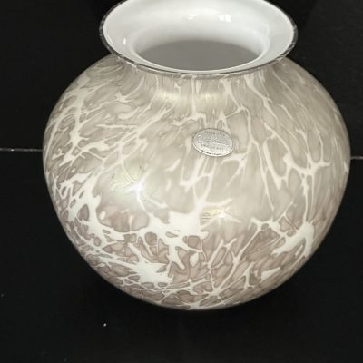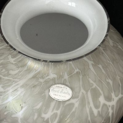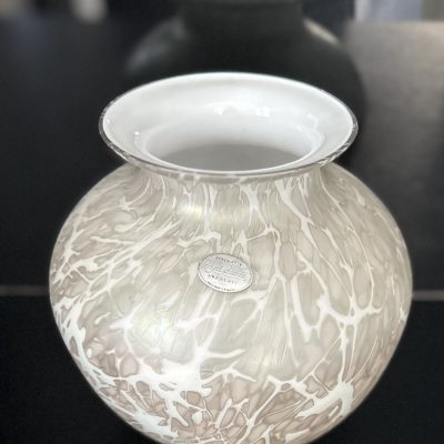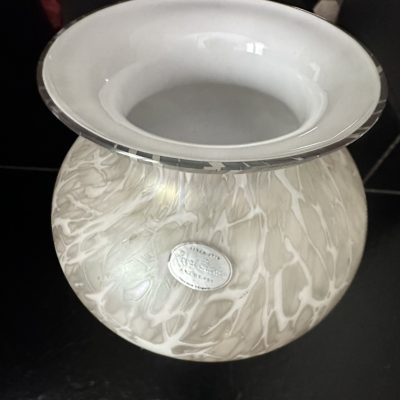 Beautiful white iridescent cased glass vase in excellent condition with no chips, cracks, or repairs. Studio art glass. Please refer to the photos as they are part of the description.