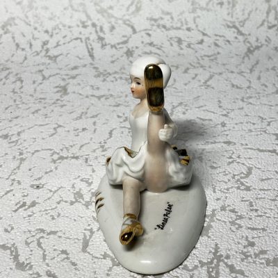 A refined Italian porcelain ballerina Linea Paben figurine. Strikingly decorated with delicate lamination in gold, capturing the grace of the dance in a manner befitting a luxury sculptural form.