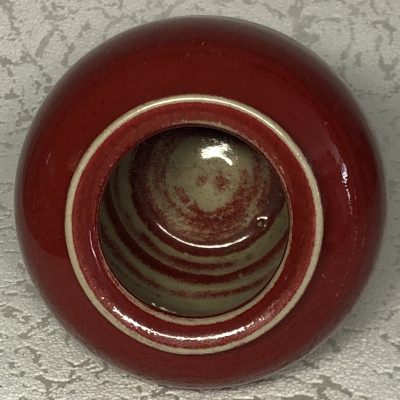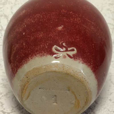 Earthenware vase with sang de boeuf glaze by pottery Koch in Workum. A vase with halfway round elevations in the surface. Marked on the bottom , period after 1997.