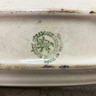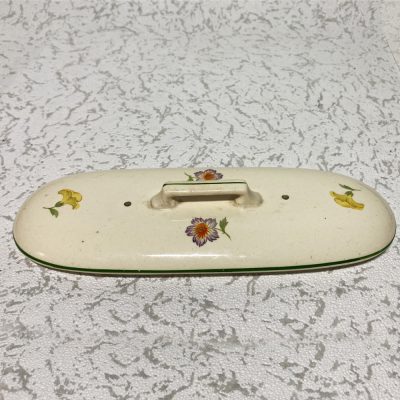 Beautiful Mastricht earthenware box/ trinket, decorated with floral and geometric patterns in creamy white and green. Earthenware comb box, circa 1900. The box in good general condition.