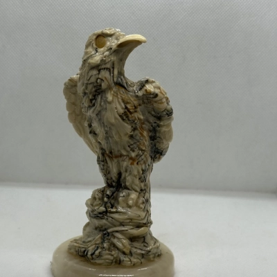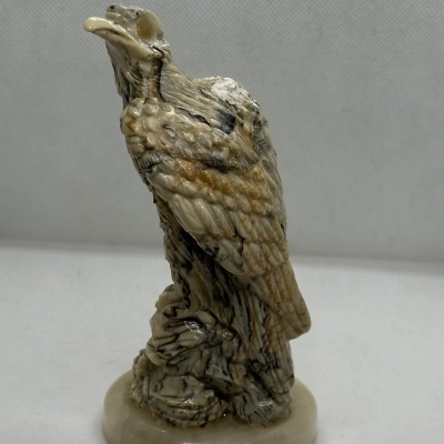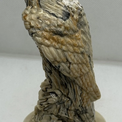 A magnificently detailed marble eagle in a heroic stance, with a noble profile and feather work. Mounted on its original marble base, this commanding bird of prey has depth thanks to the stone’s natural veining.