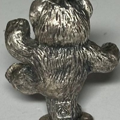 This little, silver-plated bear sculpture reveals a playful and charming personality. The rounded features and soft details make it irresistibly cute, evoking warmth and charm. The polished silver finish adds a refined touch, making it perfect for a decorative shelf, nursery, or as a thoughtful gift for animal lovers. Small yet full of character, this sculpture is a delightful piece bringing joy and whimsy into any setting.