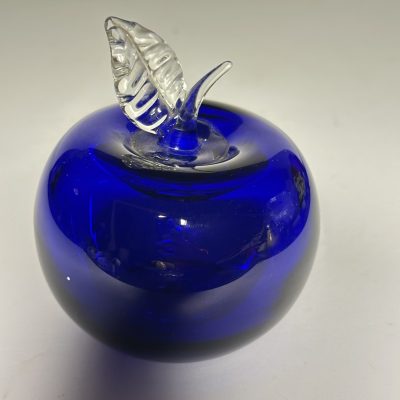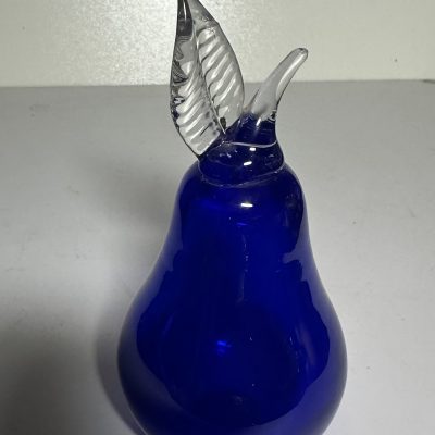 Blue colored glass Murano style apple & pear. cobalt blue iridescent wonderful happy decoration.