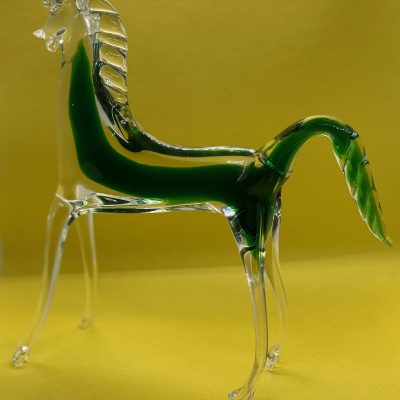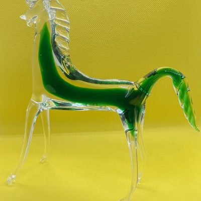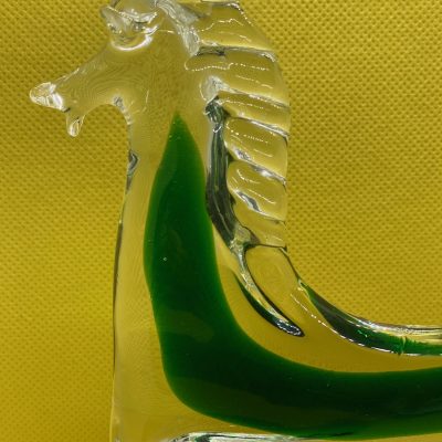 This stunning Murano Uranium Glass Horse is crafted in a sleek, layered Sommerso design that emits an extraordinary brightness under UV light. Its dynamic form captures elegance and movement, testifying to the great skill of Venetian glassmakers. Ideal statement piece for any serious collector or individualist art glass lover.