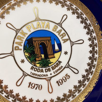 Park Playa Bara souvenir plate- 1970 1995. Hand decorated with 24 karat gold.
