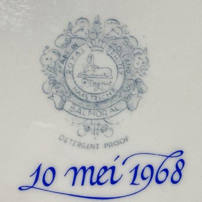 Presentation dish Royal Sphinx Maastricht earthenware Made in Holland Balmoral model blue floral decoration. 10 May 1968. Detergent proof.