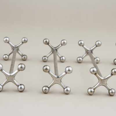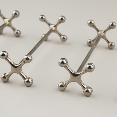 Beautiful set of antique knife rests. Knife rests made in France in the 1930s, model Atomium. Silver-plated metal has a beautiful patina (time imprint).