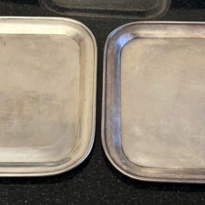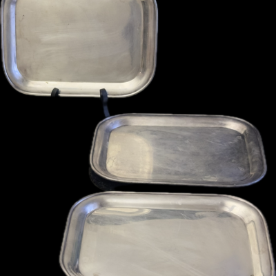 Add a touch of class to your gatherings with this handsome set of five vintage silver plated serving trays, featuring an exquisite ornate design that personifies timeless sophistication. Expertly crafted, this well-rounded collection is ideal for special occasions or everyday entertaining.