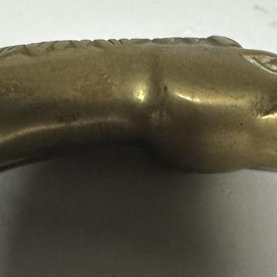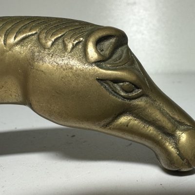 This brass horse head is designed to be mounted on a walking cane, melding functionality with elegance. The detailed work of the horse’s proud expression is nicely brought out with the polished brass finish for a timeless sophistication. A perfect choice for equestrian enthusiasts or those seeking a distinctive cane accessory, this piece is both sturdy and stylish. Whether as a replacement handle or a decorative addition, it transforms any cane into a refined statement piece.