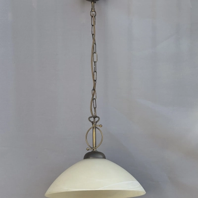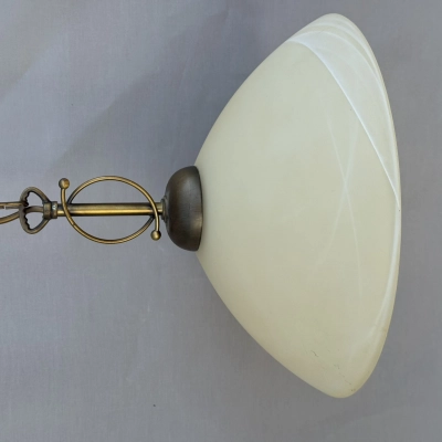 A gorgeous mid-century hanging lamp with a strong bronze frame and golden-yellow Murano-style glass from Steinhauer’s Capri series. The handcrafted glass pieces create a radiant, sunlit effect as they cascade elegantly with their warm, textured glow. This lamp, which combines Venetian-inspired artistry with German engineering, is ideal for giving any room a hint of Mediterranean coziness. It has original wiring and is fully operational. The bronze has a slight patina, which adds to its vintage charm.