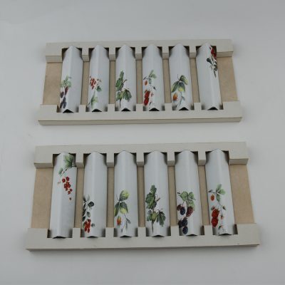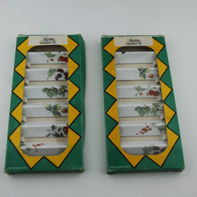 two sets of 6 French Emaille knife rests. totalling 12 floral knife rests.