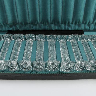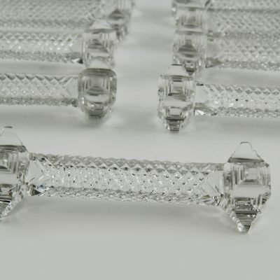 Antique set of 12 crystal knife rests knife rest Cut with a diamond pattern. Made in the 1920ies by Val Saint Lambert in Belgium.