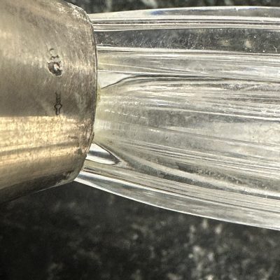 Tall Crystal Antique Dutch Crystal vase on silver base. The vase is 28.5 cm high and has a diameter of 8.2 cm. The bottom is covered with a silver. The vase was made around 1900-1920 and is in excellent condition.