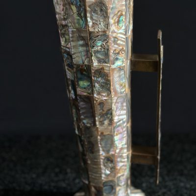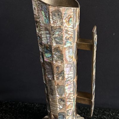 Elevate your décor with the Vintage Coastal Abalone and Brass Pitcher. This American-style piece features stunning abalone inlay and elegant brass detailing, perfect for adding a touch of coastal charm and timeless sophistication to your home