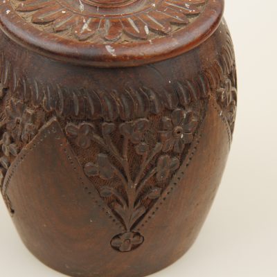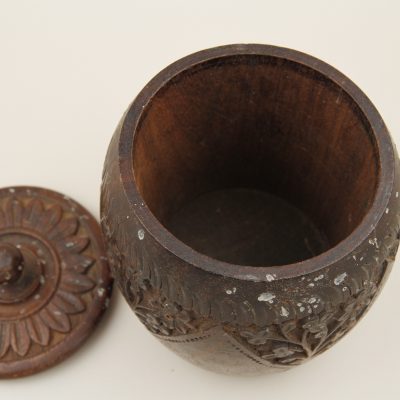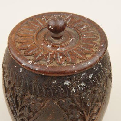 Vintage hand carved wooden storage jar, tobacco jar with beautiful engravings.